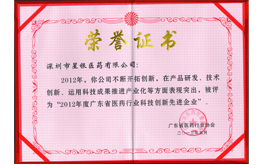 2012年度廣東省醫(yī)藥行業(yè)科技創(chuàng)新先進(jìn)企業(yè)