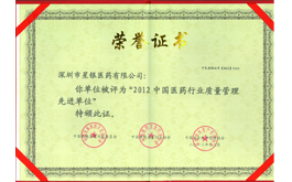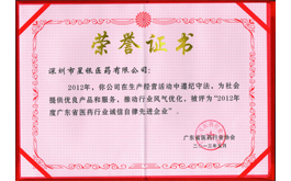 2012年度廣東省醫(yī)藥行業(yè)誠信自律先進(jìn)企業(yè)