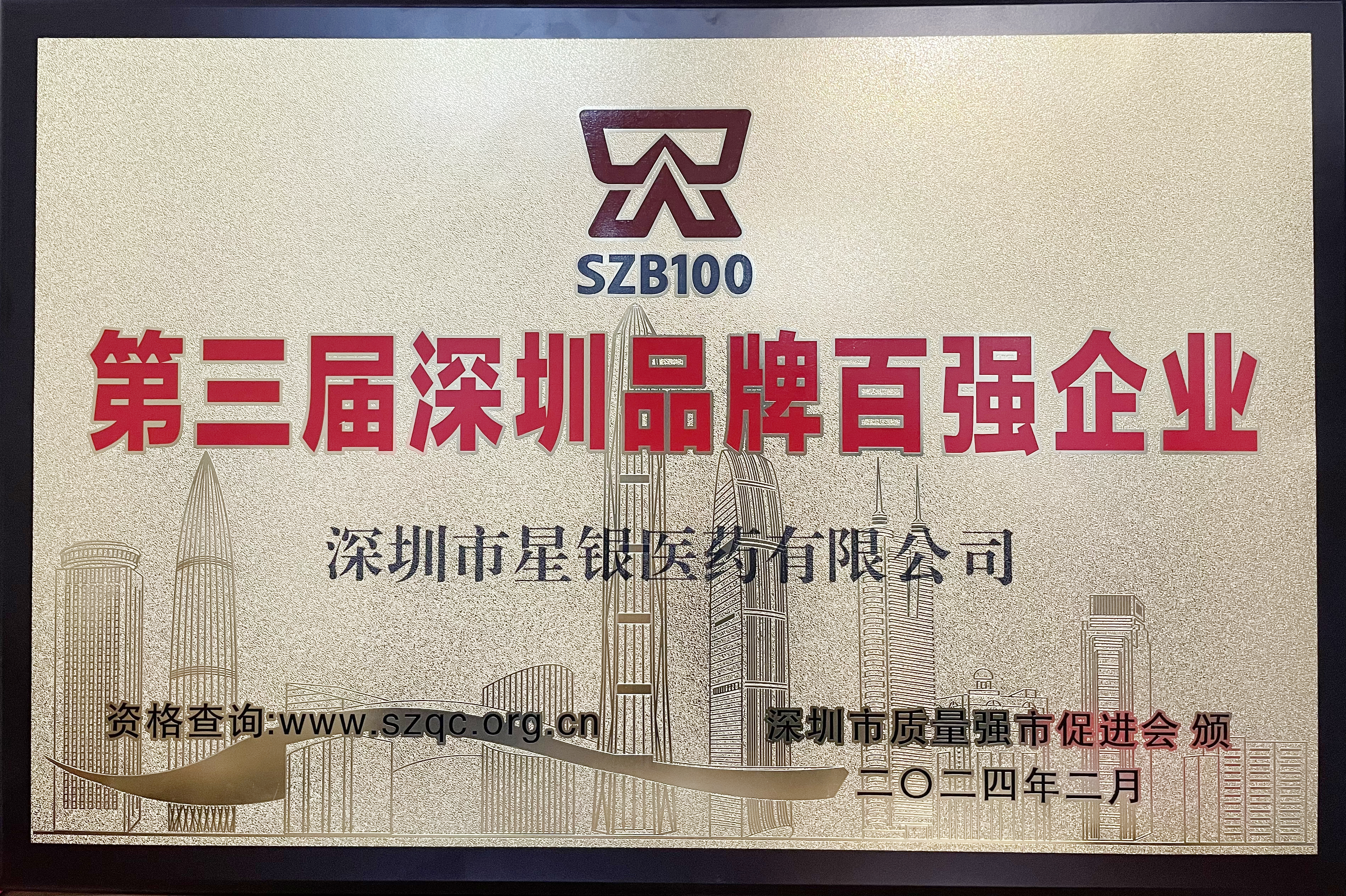 4月19日,以“培植企業(yè)新質(zhì)生產(chǎn)力、構(gòu)建高質(zhì)量生態(tài)體系”為主題的2024年深圳市質(zhì)量強市促進大會暨第三屆深圳市品牌建設(shè)促進會在銀湖會議中心舉辦。會上,舉行第三屆“深圳品牌百強”企業(yè)授牌儀式。星銀醫(yī)藥榮登“深圳品牌百強”榜。